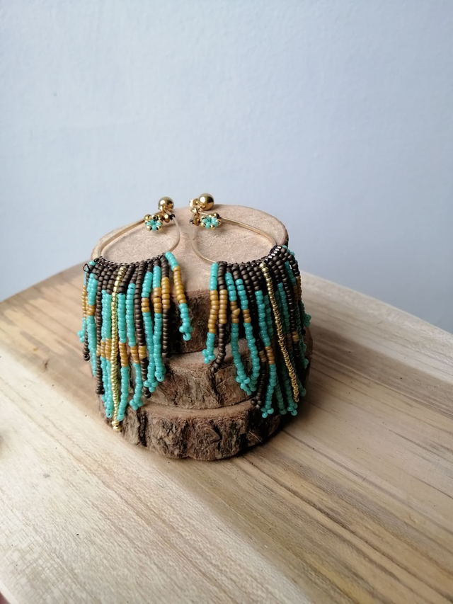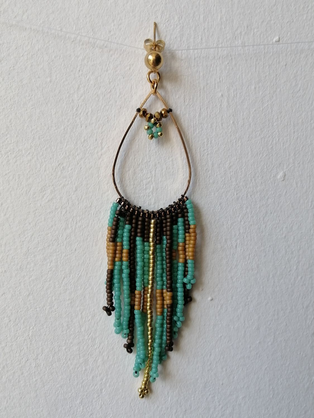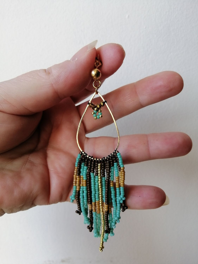 Un style Aztèque pour ces pendants d'oreilles à franges tissées en perles Miyuki rocaille.